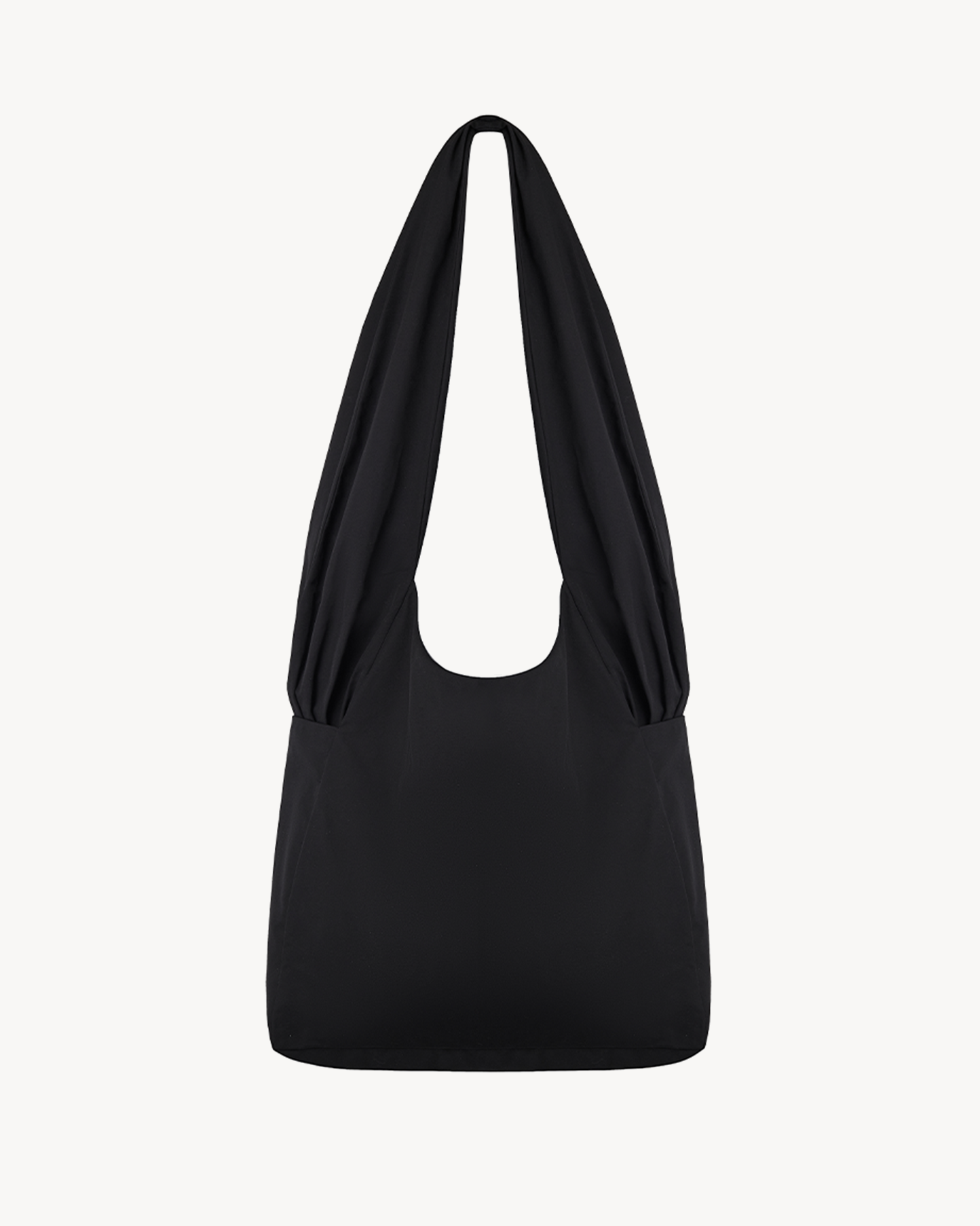 Практичная сумка из водоотталкивающей ткани с двойными плиссированными ручками. Внутри и по бокам изделия расположены карманы для телефона и мелочей.